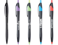 The Javalina Midnight Colors Available:Black Barrels with Black, Royal Purple,Sky Blue, Bright Green & Fire Engine RedMaximum imprint area: 1 1/2 " x 3/4". One time screen charge of: $10.00. Standard production time is five days Plus Ship Time. Rush Service Available!Blue or black ink refill cartridges available.Blue writing ink default unless otherwise stated